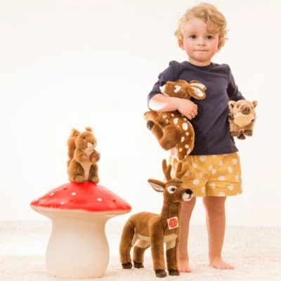 Zum Spielen und Kuscheln! Das süße Eichhörnchen aus der Hermann Teddy Collection begleitet seinen zweibeinigen Freund überall hin. Gefertigt aus hochwertigem Plüsch und gefüllt mit weicher Polyesterwatte aus 100% recyceltem Kunststoff ist der kleine Waldbewohner ein idealer Kuschelpartner!