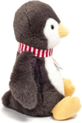 Der Pinguin „Pancho“ von Teddy-Hermann ist ein treuer und zugleich kuschlig weicher Freund, der Kinder überallhin begleitet. Dabei trägt er einen schicken Schal im Streifendessin. Im Innern befinden sich Granulate, um eine optimale Griffigkeit zu gewährleisten.